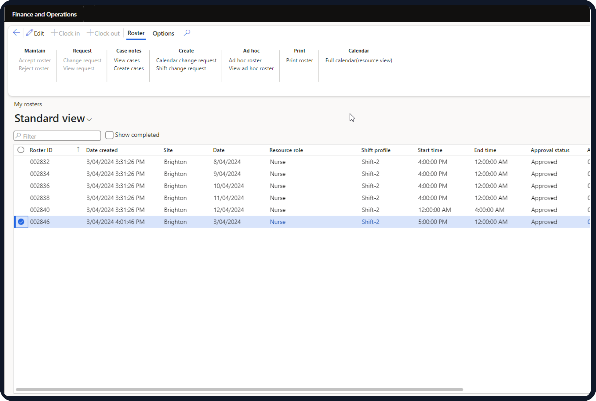 A resource can access the “My Rosters” tile in the Worker self-service to generate and see case notes against a roster line. Additionally, the admin can access and generate these case notes using the All Rosters form, My Rosters form, and Change Request form.